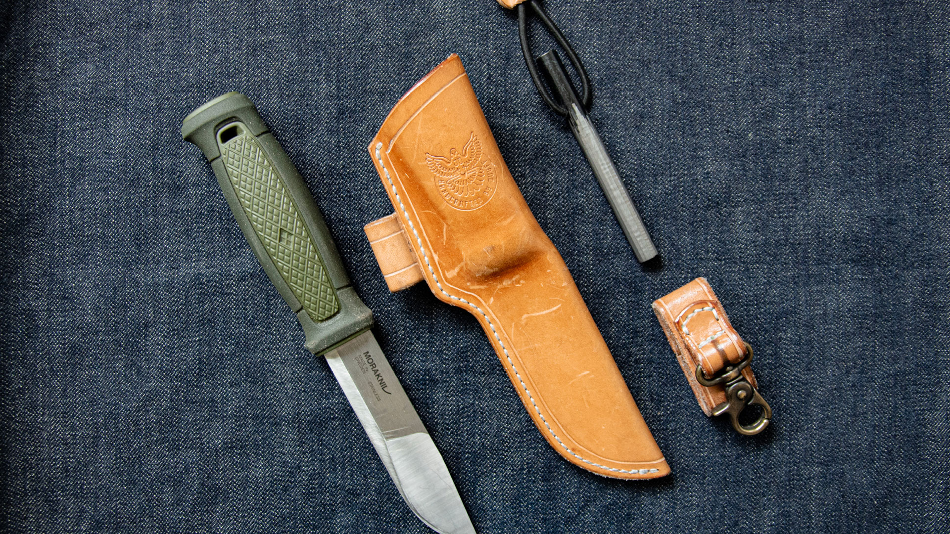 Een 3d gevormde houder voor je outdoormes en firesteel. De riemlus en de schede zijn los van elkaar te halen zodat je gemakkelijk je mes even kunt afdoen en wegstoppen als je de supermarkt in moet. Dat scheelt een hoop geschrokken mensen plus voor de deur je riem moeten losmaken.